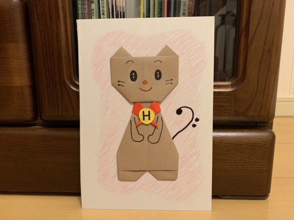 「今日はねぇ、白いねこのとおんちゃんが遊びに来てくれたんよ。とおんちゃ〜ん、どこかなぁ❓さがしてみようか❓」