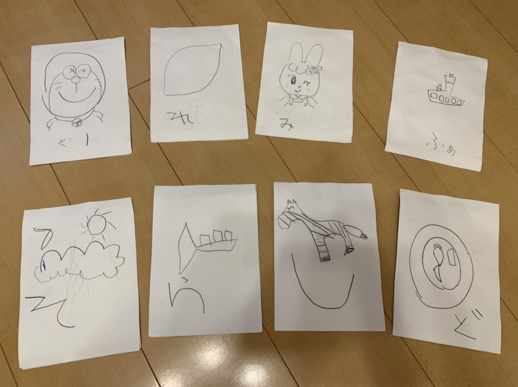 そして昨日のレッスンでは、体験レッスンの時に渡しておいた音符カードの裏に、自分で覚えやすいように絵を書いてきていました❗️