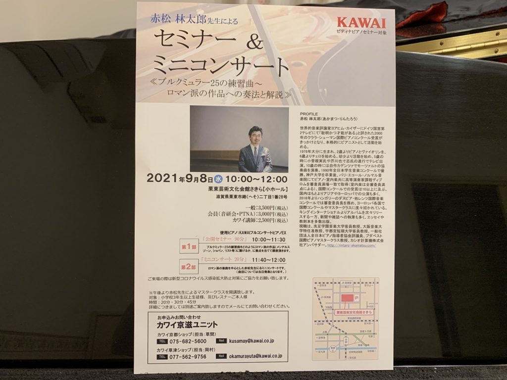 今日、赤松林太郎先生による、セミナー&ミニコンサートに参加しました。《ブルクミュラー25の練習曲〜ロマン派の作品への奏法と解説》と題して、講義していただきました。