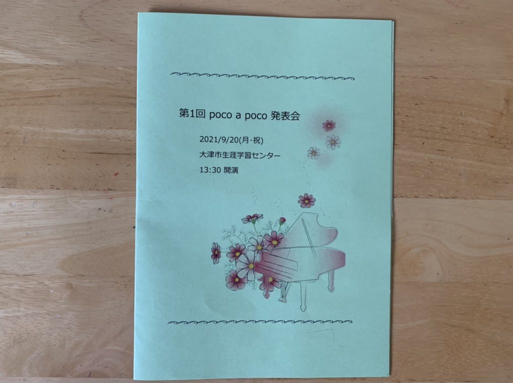 先日9月20日(祝)に、大津市生涯学習センターで、🎹第1回 poco a poco 発表会🎊が無事に終わりました。緊急事態宣言の中、感染対策を徹底して行いました。保護者のみなさま、関係者のみなさま、ご理解とご協力ありがとうございました🙇♀️。