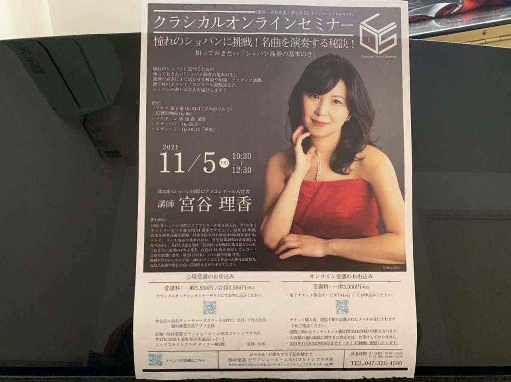 昨日、オンラインセミナー📝を受講しました。講師は、1995年の第13回ショパン国際ピアノコンクール入賞の宮谷理香さんです。