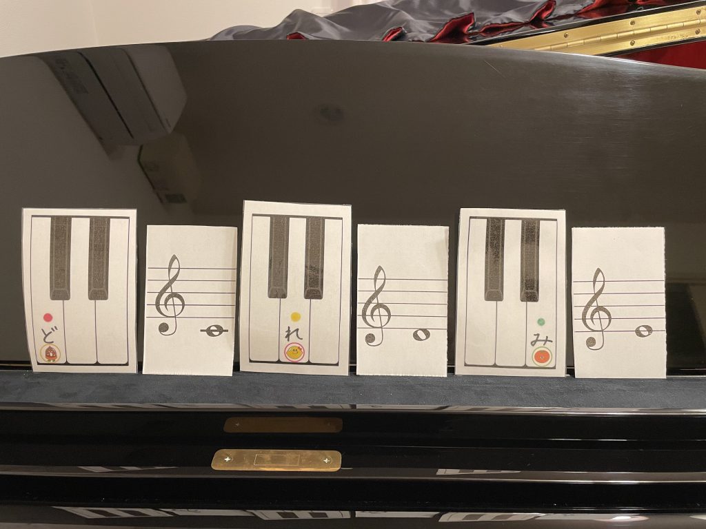 これを使って鍵盤や音符を覚えているSちゃんは大喜び💕。前よりも鍵盤や音符に興味を持ってくれて、少しずつ覚える気持ちになってくれています😊。