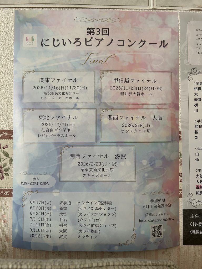 昨日、にじいろピアノコンクール関西地区予選が行われ、poco a pocoピアノ教室から、たくさんの生徒さんが参加されました。